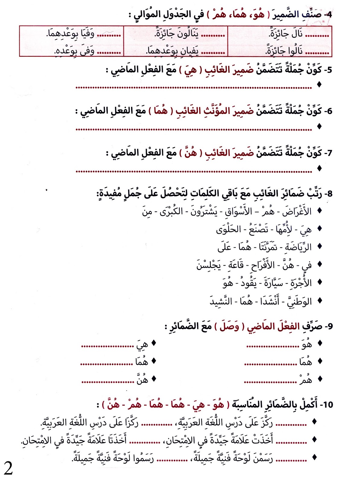 ضمائر الغائب تدريبات تمارين أنشطة للسنة معلقات للثالثة ابتدائي