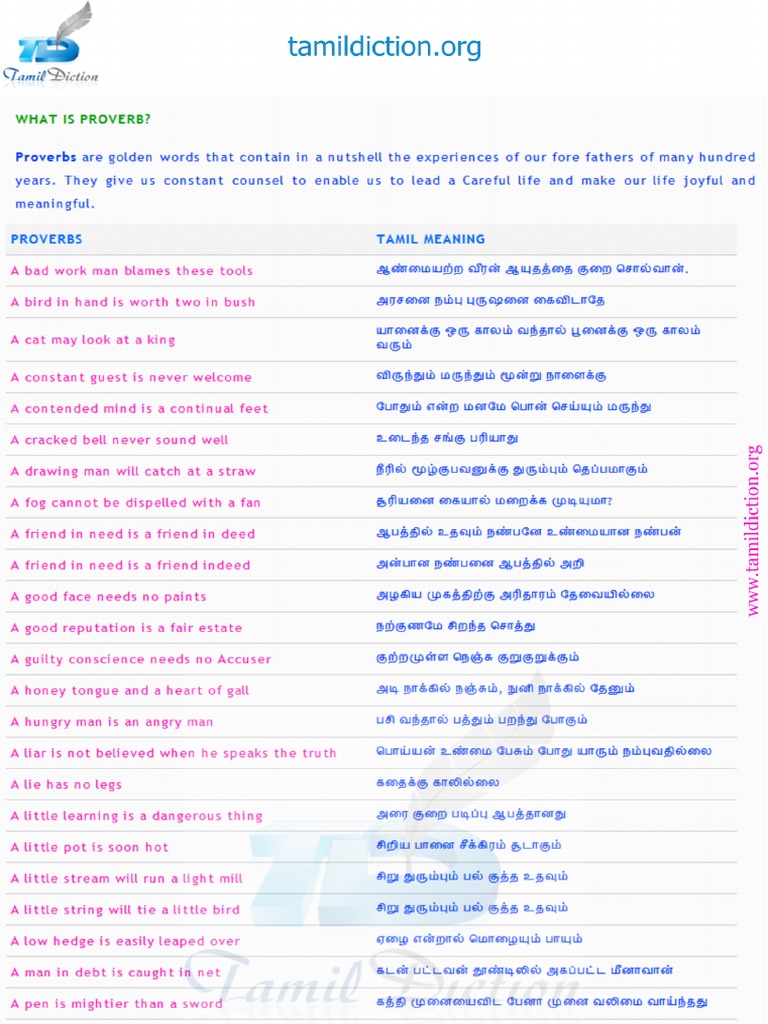 Proverbs English To Tamil Meaning 1 Pdf Document