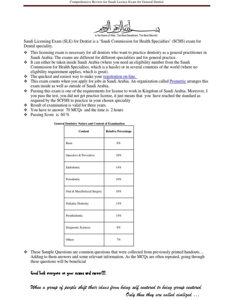 Pdf Mcqs Review For Saudi Licensing Exam Sle For Faculty Of Dentistry Ehab Aboueladab Academia Edu